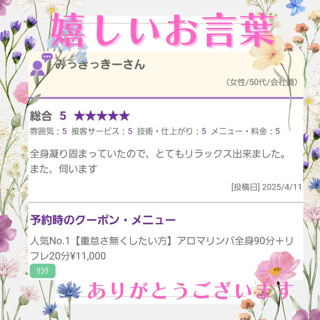 嬉しいお言葉【小田原・エステ・リラク】