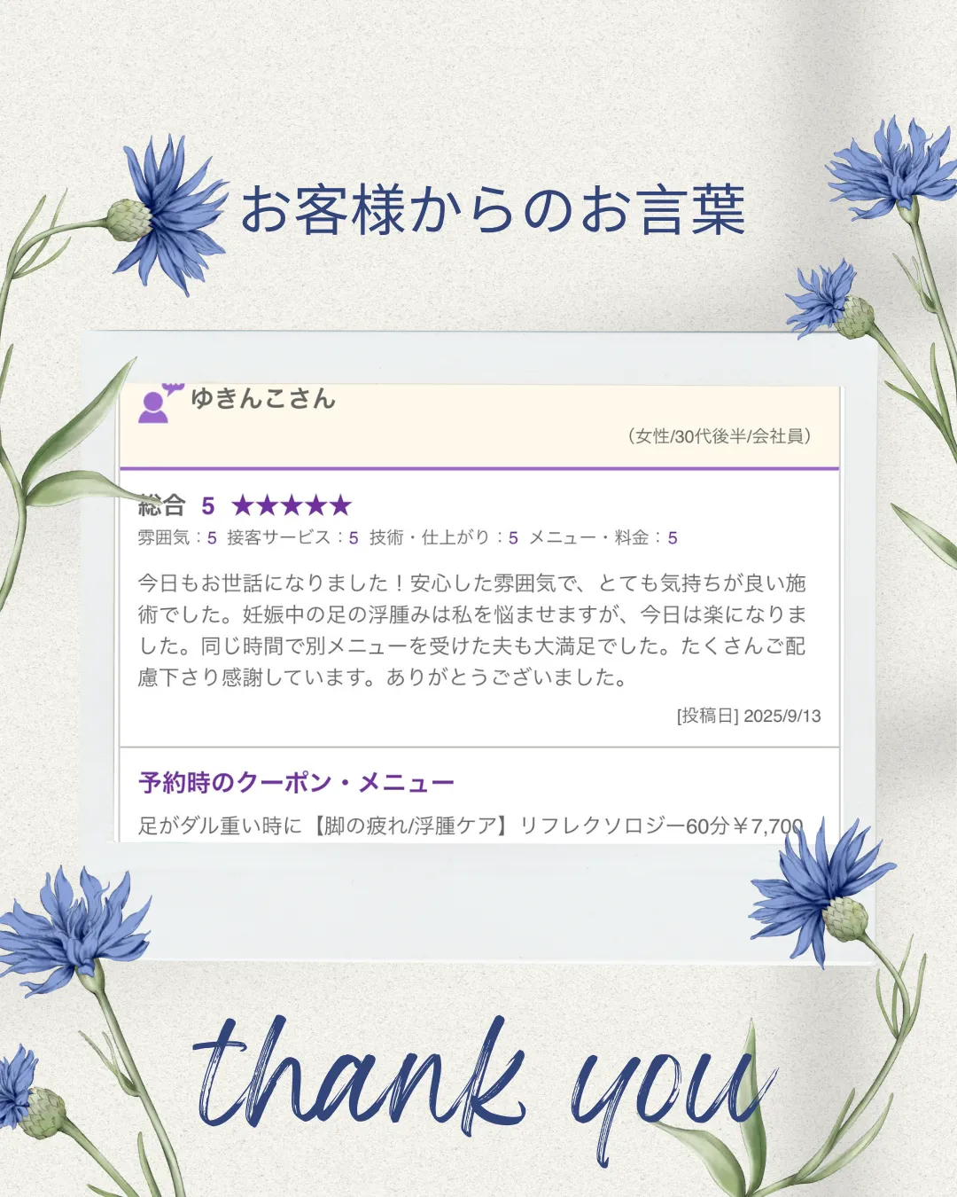 お客様の声【小田原・エステ・リフレクソロジー】