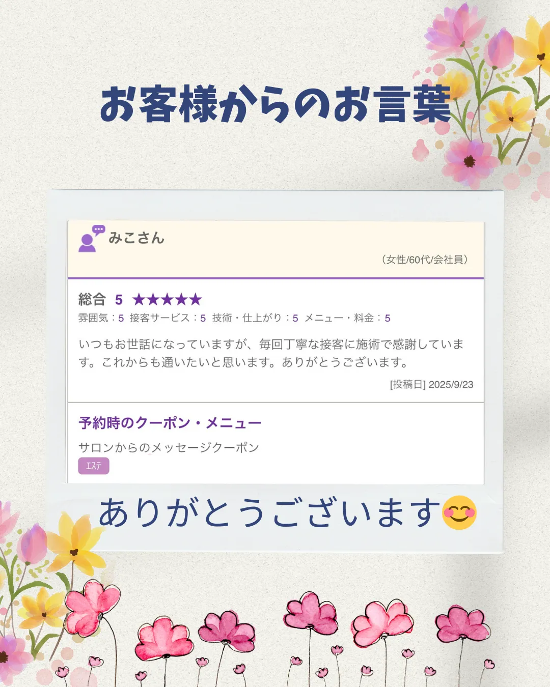 お客様からのお言葉💐