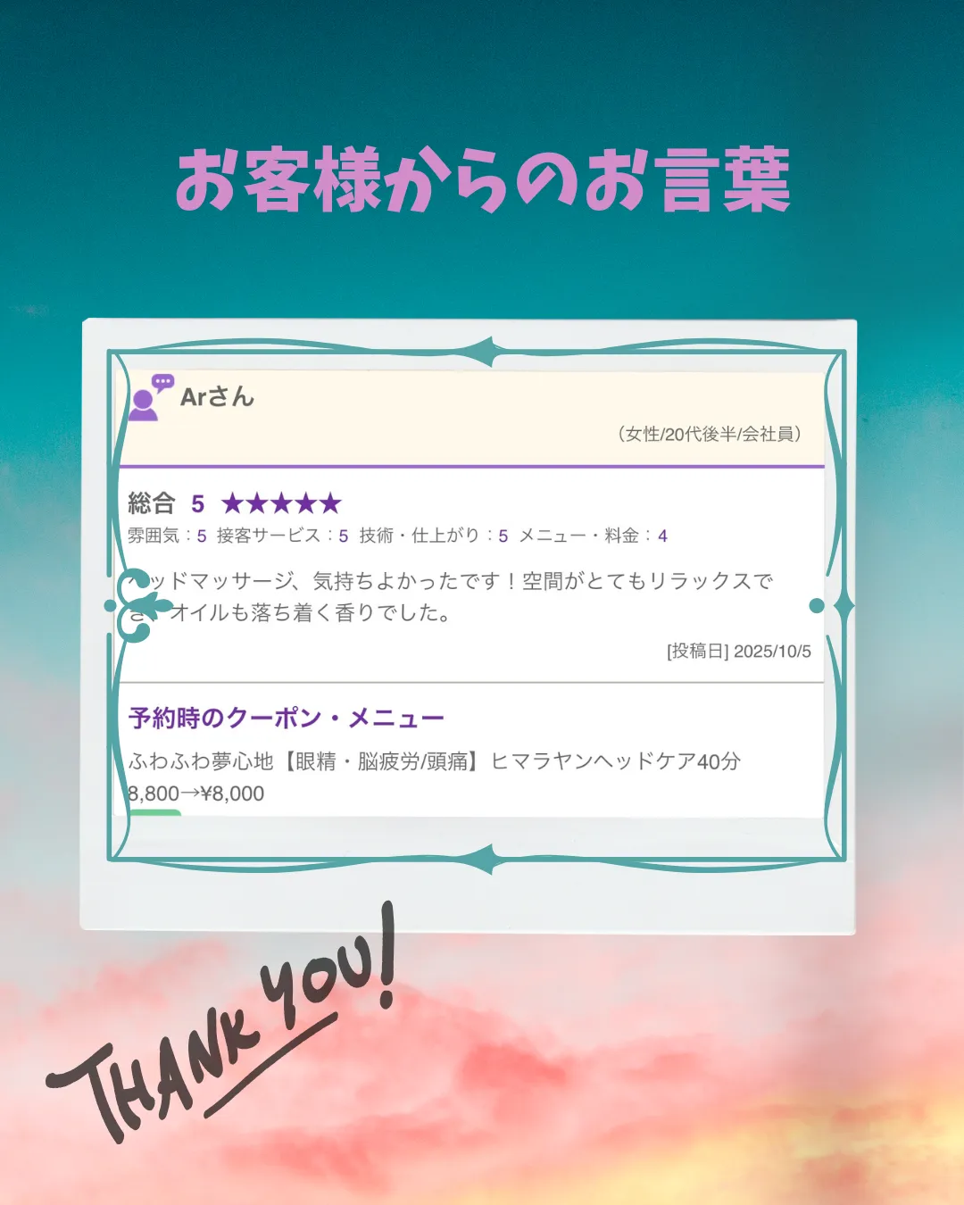 お客様の声🌟小田原・エステ・ヘッドマッサージ