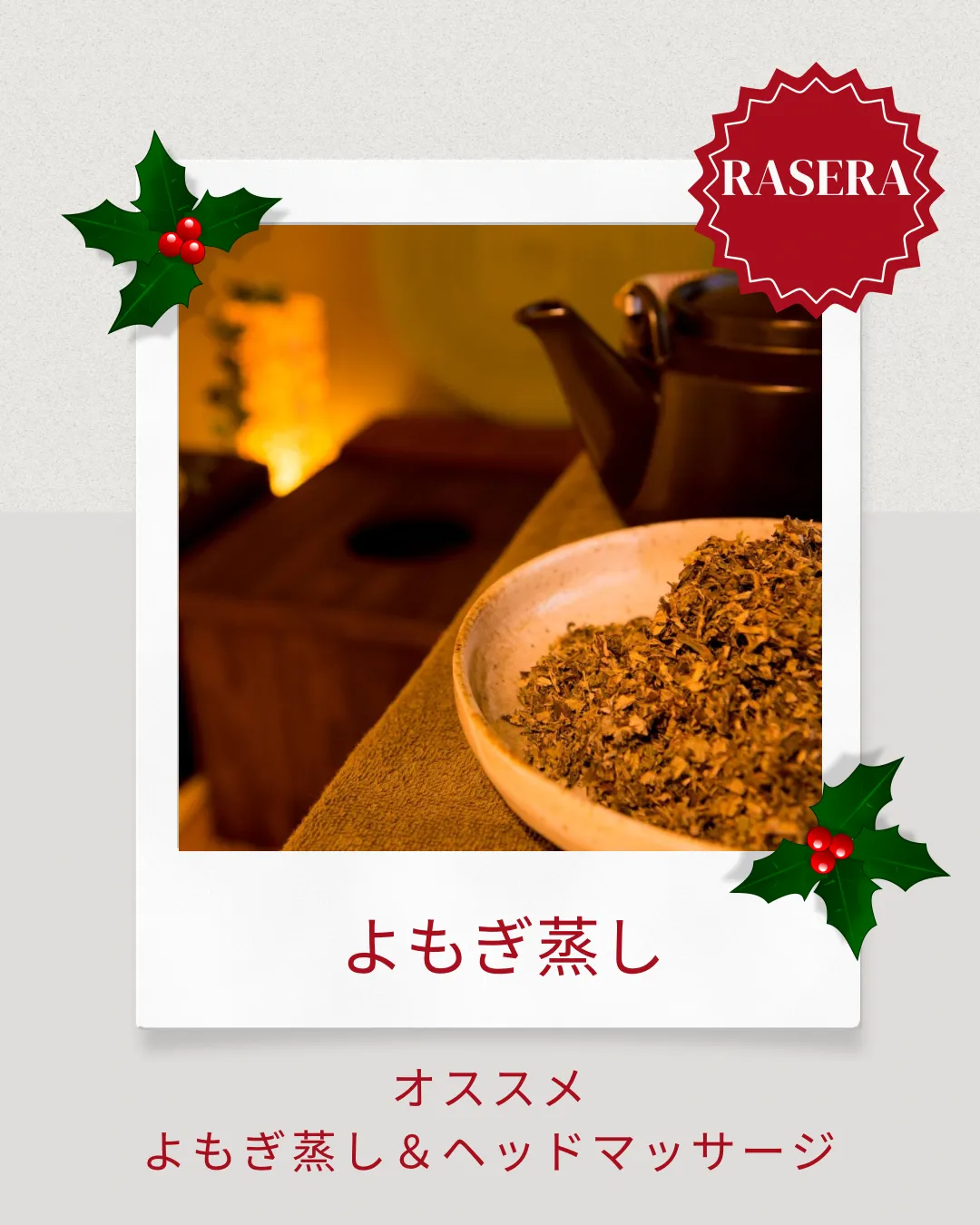 人気のよもぎ蒸しで体の芯からじんわりと温めて、ストレスフリーなひとときをお過ごしください😊